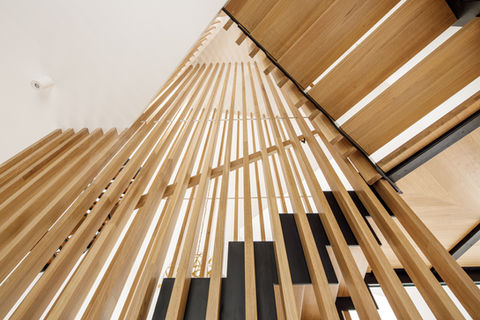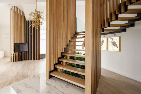 Fuziunearafinată a materialelor într-o scară modernă și elegantă.